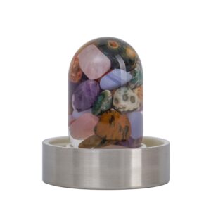 このゴールドの力は、複雑な問題に鋭い判断力をもたらし、創作活動にはアイデアの源泉への明確な道筋を示します。重要な決断には、明晰でありながらも確実に落ちどころを定める実践的なエネルギーを提供します。ラピスラズリが深い洞察力と精神的安定をもたらす一方で、ルチルクオーツはその洞察を現実的な行動へと変換する力を加え、思考の堂々巡りを防ぎ、明確な方向性と具体的な解決策を見出すことを可能にします。